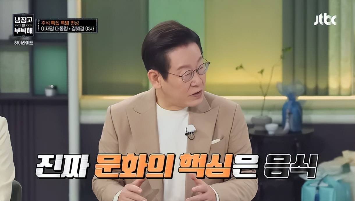 这期被安排为中秋特辑的节目,主题并非聚焦总统家的冰箱隐私,而是别出心裁地围绕“韩牛、干菜叶、沙参、白萝卜”等韩国本土食材展开料理对决。李在明在节目中直言:“K-pop和韩剧固然重要,但饮食才是文化真正的核心。”他强调,口味一旦在记忆中定型便难以改变,而饮食产业将是推动韩国文化输出与国家发展的关键动力——这也正是他愿意打破常规参与综艺的原因。