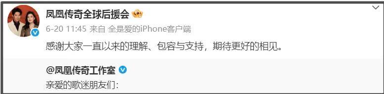 双人组合弊端就是一旦有人惹出麻烦,只能解散。在曾毅风波发生前,单人活动不会被看作是单飞证据,而在这之后,玲花的单人活动就被粉丝们视为是单干信号,说明粉丝们的心态已十分不稳。关于解散,凤凰传奇曾经在2017年回应过,后援会发文呛“我们不解散,你才要解散”,这份自信正是粉丝们当下需要的,可惜官博也随曾毅一样沉寂了,不知许诺的再见还能不能再见。