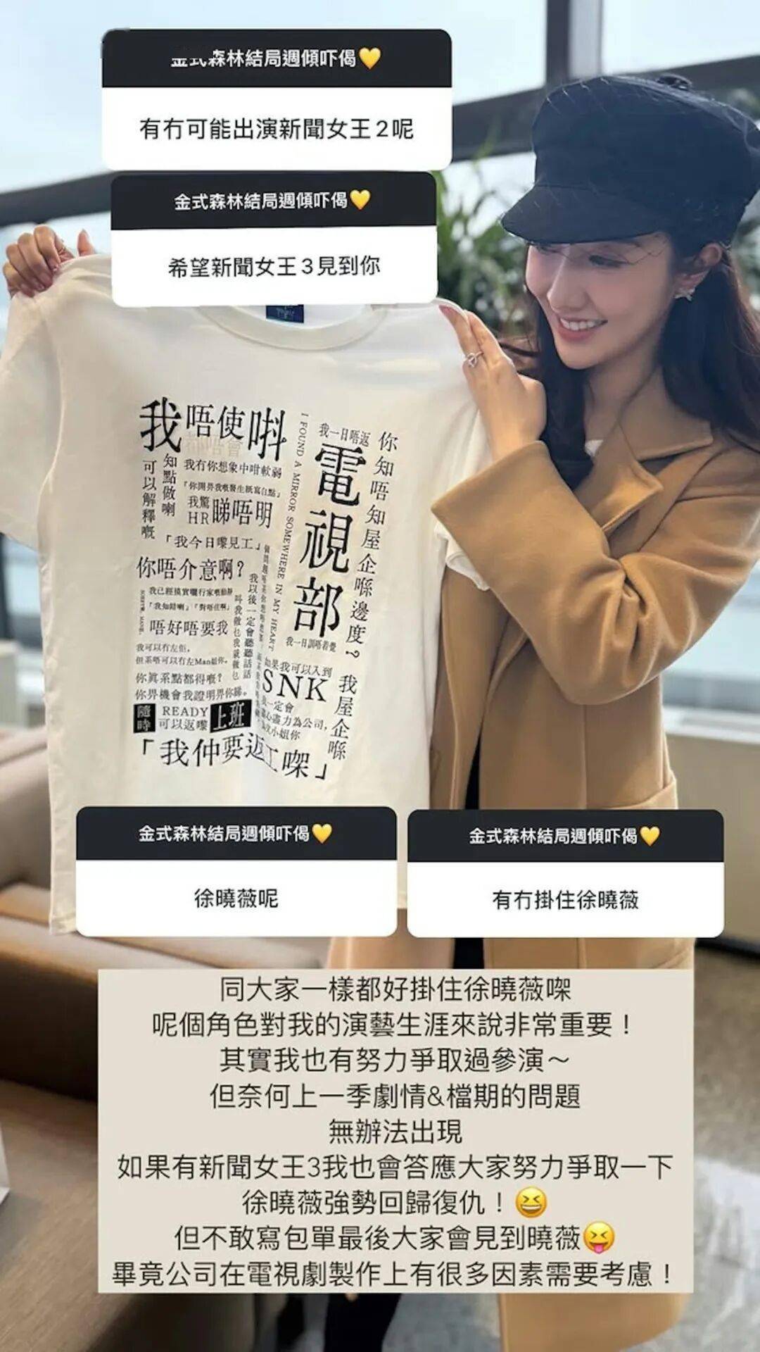 《新闻女王2》已在 TVB 开播,但第一部中饰演徐晓薇的何依婷却未参演。近日,何依婷在社交网亲自回应了缺席续集的原因。