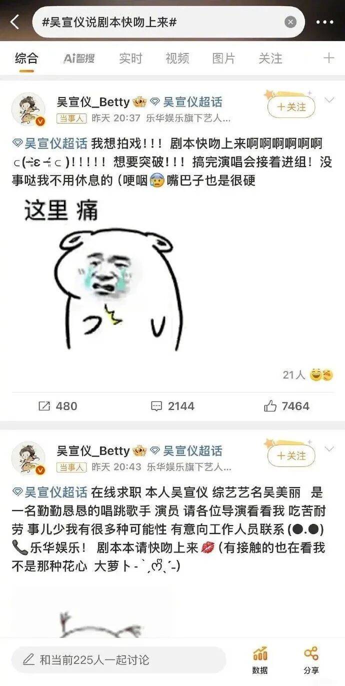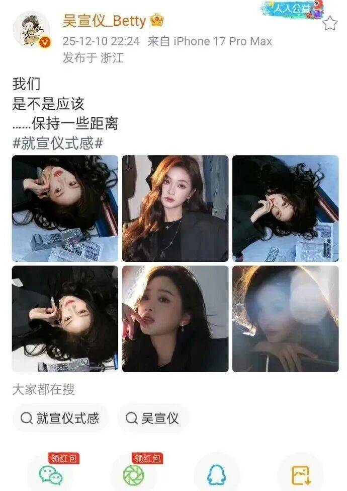 在这次之前吴宣仪刚训过一次粉了,因为粉丝许愿她下一部作品是古偶,她就说自己想休息不要烦。