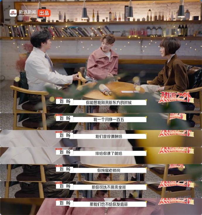 时间拉回2014年,刘旸以无底薪方式加入新东方,首月收入全靠课时费——150元。这笔钱在当时意味着什么?意味着他只能租住月租600元、连空调都没有的隔断房。更狠的是工作强度:寒冬凌晨,顶着冰雹,5点起床,穿越城市通勤两小时去郊区授课。这段经历被他轻描淡写地称为“励志故事的第一页”,而新东方早期“用自由换取低保障”的薪酬制度,让他的一切收入都死死绑在了排课量上。