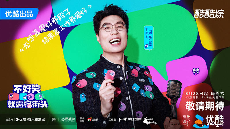 3月23日,全新的综艺节目《不好笑就露宿街头》官宣定档,3月28日起,优酷独家上线。这是一档脱口秀综艺节目,属于比拼形式,被选为“不好笑”的脱口秀演员,需要露宿街头。好在,这档综艺是在长沙录制。要是在象牙山,能把不好笑的演员们冻成冰棍。这档节目官宣的嘉宾包括赵露思、大张伟、小鹿、周奇墨、翟佳宁等人。这也是优酷综艺第一次拥抱脱口秀。